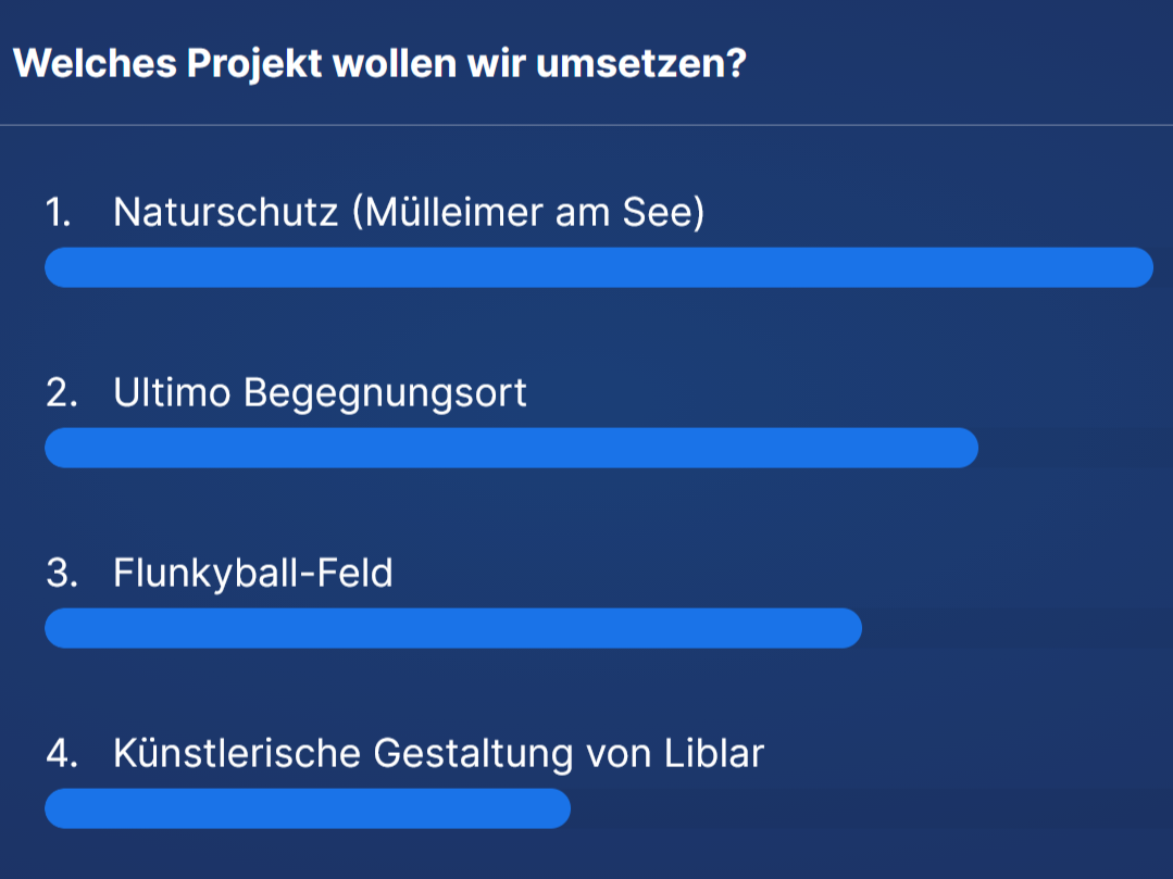 Eine Woche später kam eine Frau von der Stadtplanung zu Besuch. Sie hat uns dabei unterstützt, die ersten Ideen von letzter Woche weiter zu konkretisieren und zu überlegen, welche Ideen auch wirklich umsetzbar sind. Das war super hilfreich! Außerdem hat sie uns diverse Tipps und Kontakte an die Hand gegeben, mit denen wir anschließend weiter planen konnten. Am Ende der Session haben wir eine digitale Abstimmung gemacht, welche der Ideen wir umsetzen wollen und haben uns für den Bau von Mülleimern am Liblarer entschieden. Falls daraus aus irgendeinem Grund nichts werden würde, hatten wir immer noch die anderen Ideen in petto.